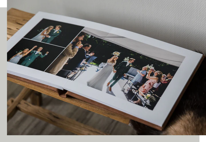 Our albums are professionally bound as lay-flat albums. The pages lie completely flat, allowing you to effortlessly extend a single photo across two pages.
